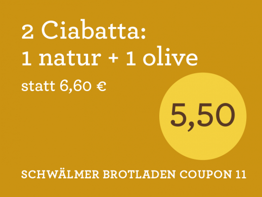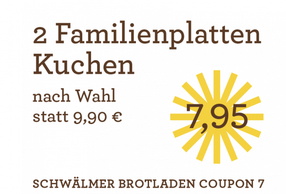 *Nur solange der Vorrat reicht. Nicht mit anderen Rabattaktionen (Brotladenkarte) kombinierbar.
